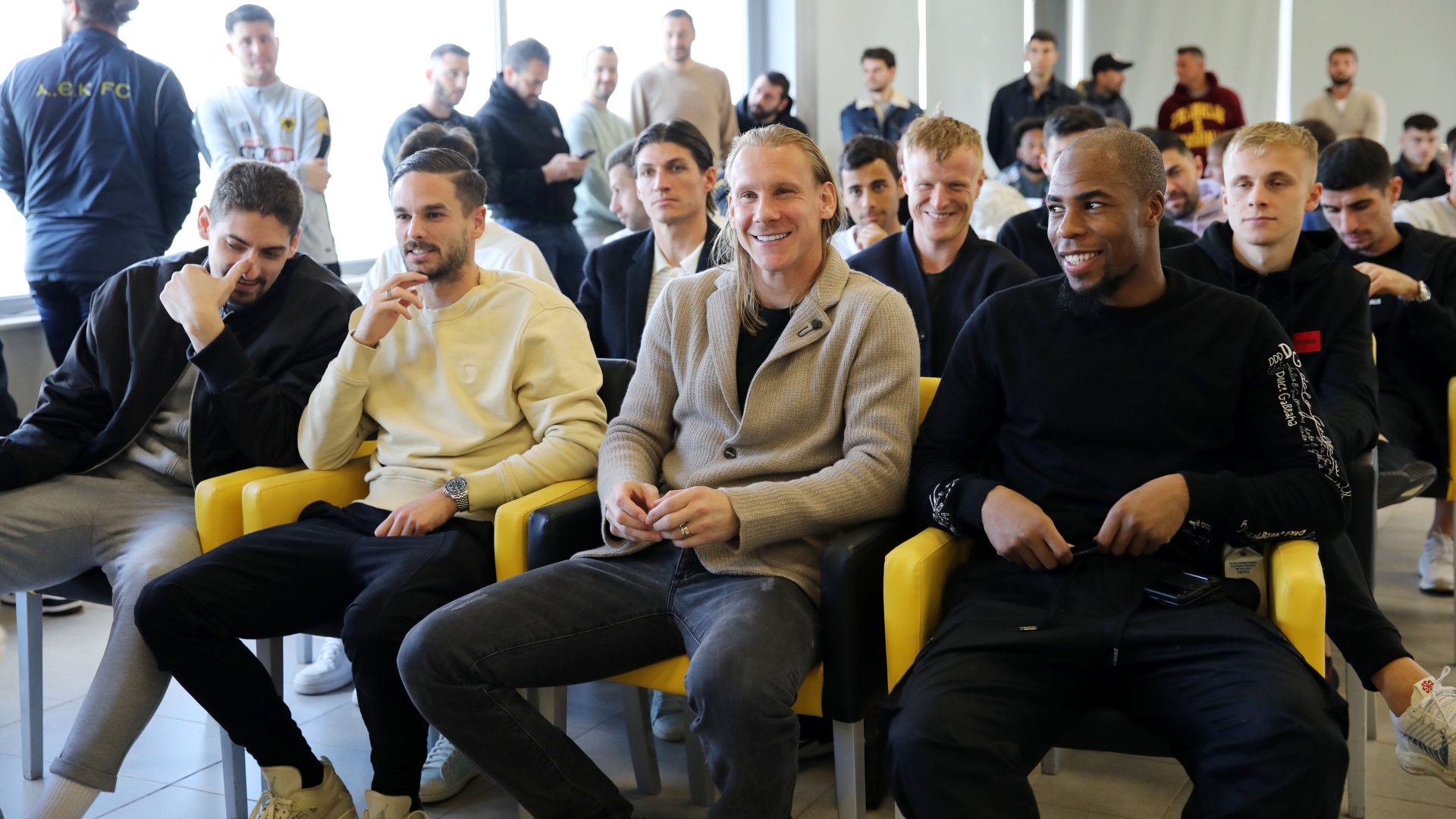 Επίσης στους τυχερούς ήταν ο τιμ μάνατζερ της ομάδας Δημήτρης Ναλιτζής, οι συνεργάτες του Ματίας Αλμέιδα Ντάνιελ Βέγκα, Γκίντο Μπονίνι και Αγκουστίν Σαλαζάρ, οι φυσιοθεραπευτές Λευτέρης Γαϊτάνος, Αλέξης Ασπρογιάννης, ο φροντιστής της ΑΕΚ Β Δημήτρης Μανίτσας και ο υπάλληλος της εγκατάστασης Λευτέρης Τσέπης.