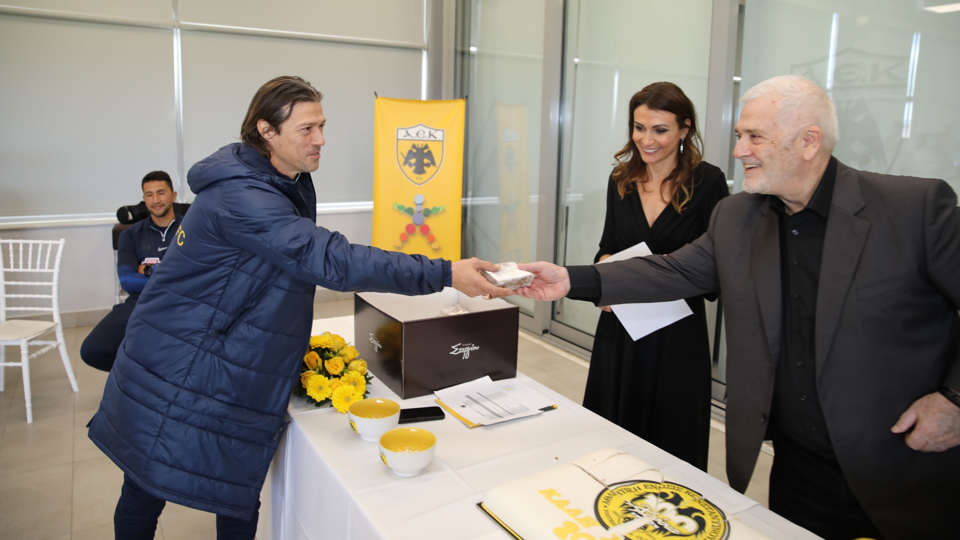 Το «παρών» στην εκδήλωση έδωσαν επίσης ο Πρόεδρος της ΠΑΕ Ευάγγελος Ασλανίδης, ο Α’ Αντιπρόεδρος και Διευθύνων Σύμβουλος Γιώργος Κοσμάς, η Γενική Διευθύντρια Αγγελική Αρκάδη, η υπεύθυνη Δημοσίων Σχέσεων και μέλος του ΔΣ Ανθή Παπακώστα, ο Εκτελεστικός Διευθυντής Παναγιώτης Κονέ, ο Αθλητικός Διευθυντής Μπρούνο Άλβες, ο Τεχνικός Διευθυντής Ράντεκ Κουχάρσκι, ο σύμβουλος επικοινωνίας Γιάννης Καραλής και ο υπεύθυνος του Γραφείου Τύπου Τάσος Τσατάλης.