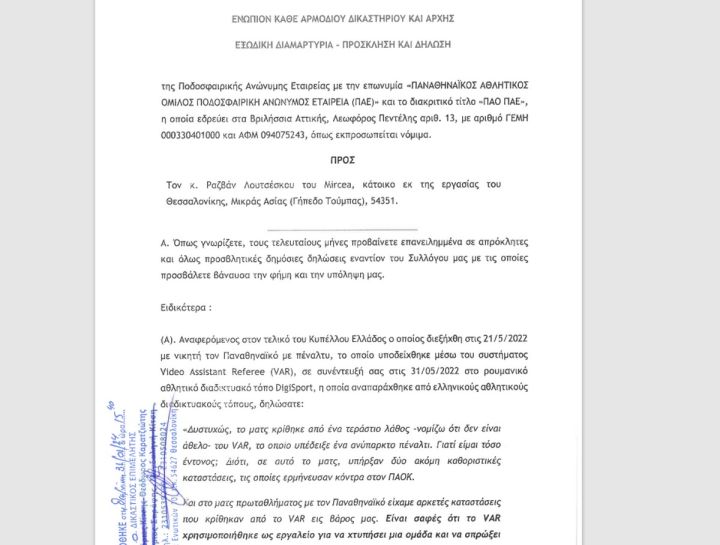 Δείτε ολόκληρο το εξώδικο του Παναθηναϊκού στον Ραζβάν Λουτσέσκου: