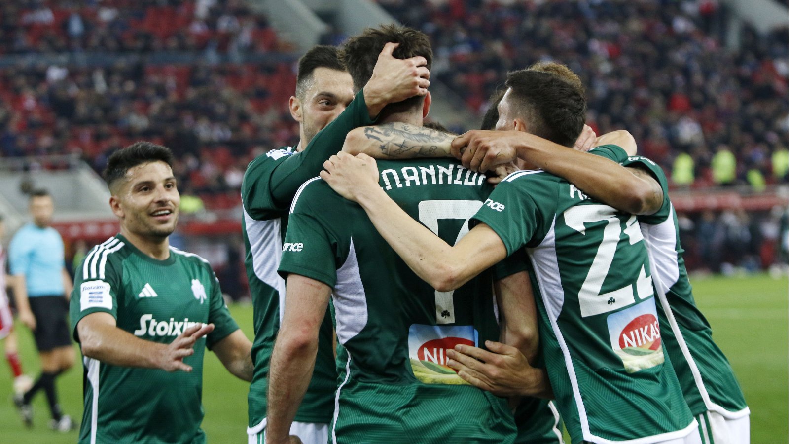Η χθεσινοβραδινή νίκη μπαίνει στις σπουδαιότερες του «τριφυλλιού» επί των «ερυθρόλευκων» στο «Γ. Καραϊσκάκης». Δεν είναι μόνο το σκορ και τα τρία γκολ μέσα στο Φάληρο. Είναι ο τρόπος που ήρθε το αποτέλεσμα. Τι κι αν η ομάδα του Φατίχ Τερίμ ήταν φουλ πιεσμένη εξ’ αρχής. Τι κι αν βρέθηκαν πίσω στο σκορ χάρη σε ένα γκολ κλάσης από τον Ποντένσε κι ενώ μέχρι εκείνο το σημείο πατούσαν καλύτερο στον αγωνιστικό χώρο. Οι «πράσινοι» τα κατάφεραν. Έκαναν την ανατροπή με δυο γκολ στο ημίχρονο από Μπακασέτα και Ιωαννίδη και έβαλαν κι ένα τρίτο γκολ στην επανάληψη πάλι με τον διεθνή φορ, αφού πρώτα άντεξαν στην πίεση των «ερυθρόλευκων».