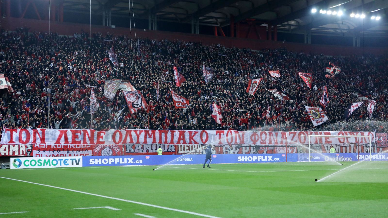 Ο Ολυμπιακός συμπληρώνει 99 χρόνια ζωής και οι οπαδοί του φώναξαν συνθήματα για την ομάδα τους.