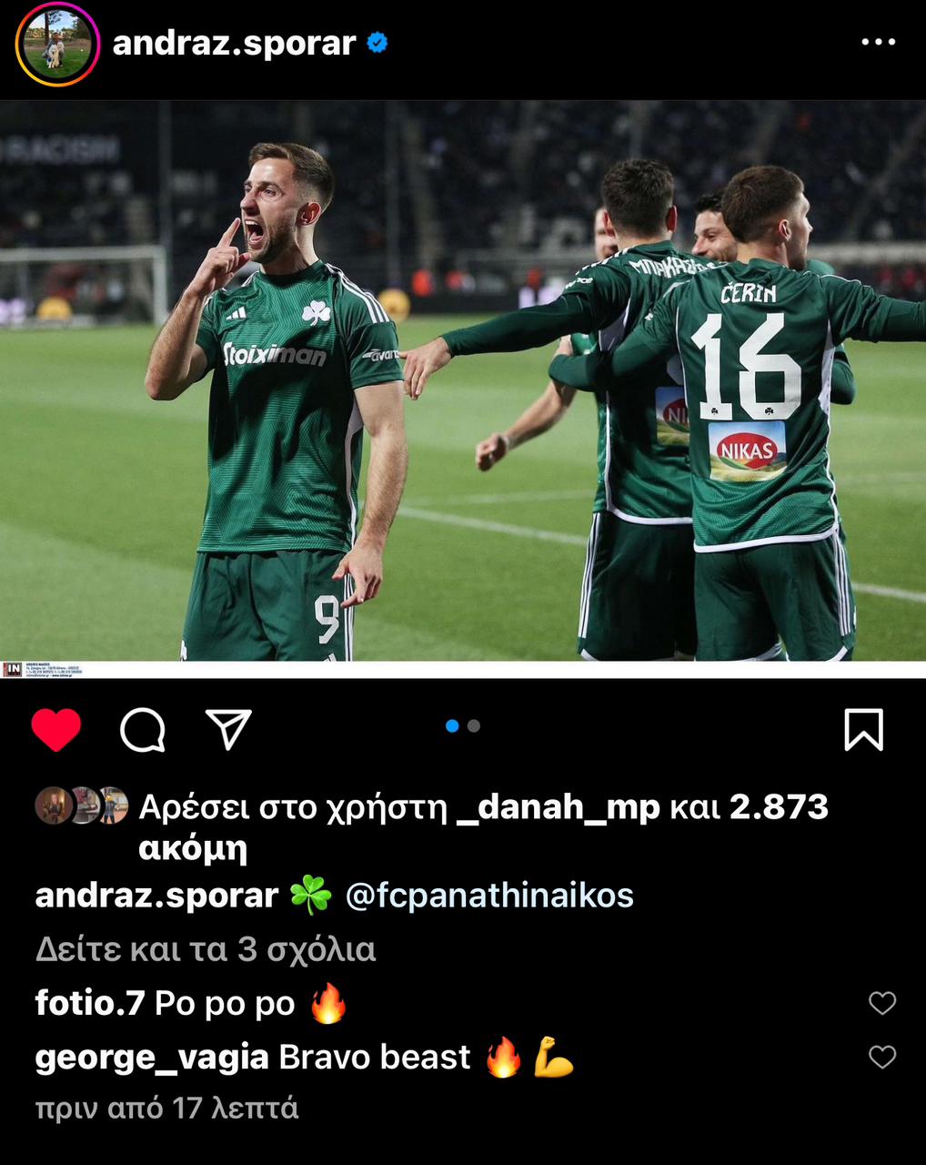 Σε ανάρτηση που έκανε ο Σλοβένος στο Instagram απωθεώθηκε από τους συμπαίχτες του, με τον Φώτη Ιωαννίδη να το σχολιάζει με χιουμοριστικό τόνο «Πο πο πο». Συνέχεια στα σχόλια έκανε ο Βαγιαννίδης χαρακτηριζοντός τον «Κτήνος».
